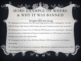 To Kill A Mockingbird As A Banned Book Mariyah Jahangiri
