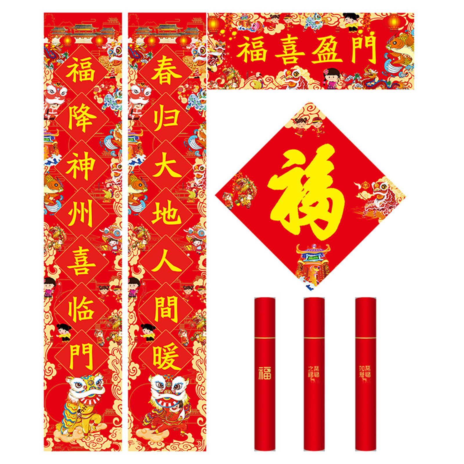Binyou Chinese New Year Decoration Kit Couplets Fu Character Sticker Paper Tube Set For Spring Festival 2022 Window Door Wall Decoration Festive Supplies Walmart Com